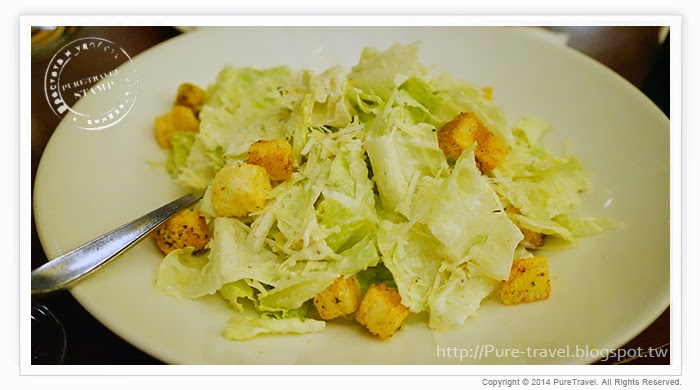 羅蔓生菜加上麵包丁搭配經典凱薩醬