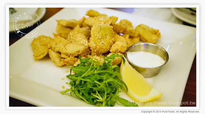 酥炸朝鮮薊心撒上帕米森起司並搭配香檸美乃滋