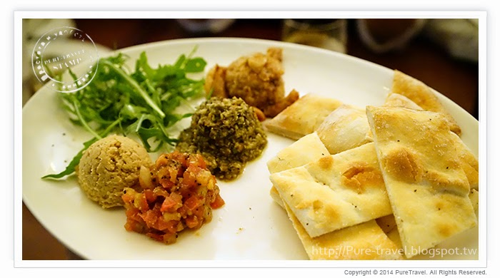 印度烤餅搭配橄欖風味醬、烘烤大蒜、義式蕃茄羅勒沾醬及芝蔴