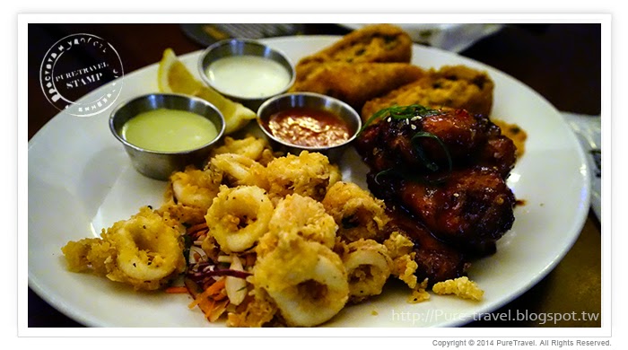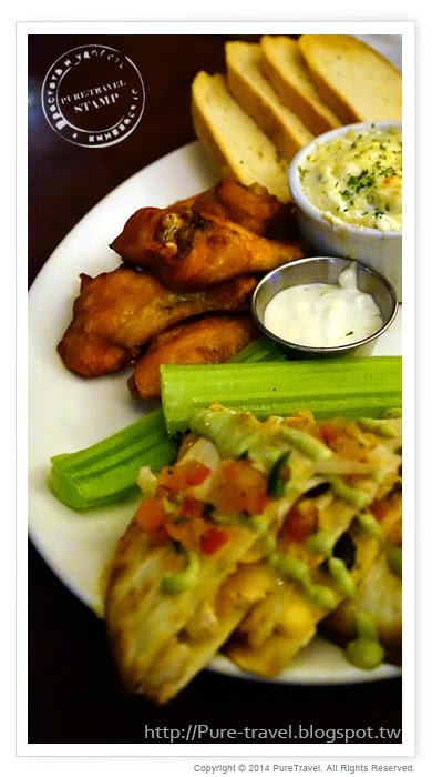 田納西雞翅、酥炸花枝及美國西南風味捲的組合